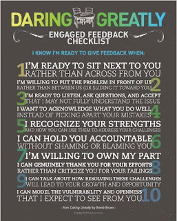 As leaders, partners, and parents, we are required to give feedback regularly. The trick is, can we engage in the process of discussing feedback from a place of true vulnerability and authenticity. One of my favourite authors, Brene Brown, illustrates the beauty of engaged feedback in this poster.